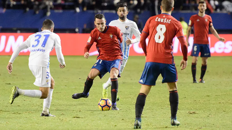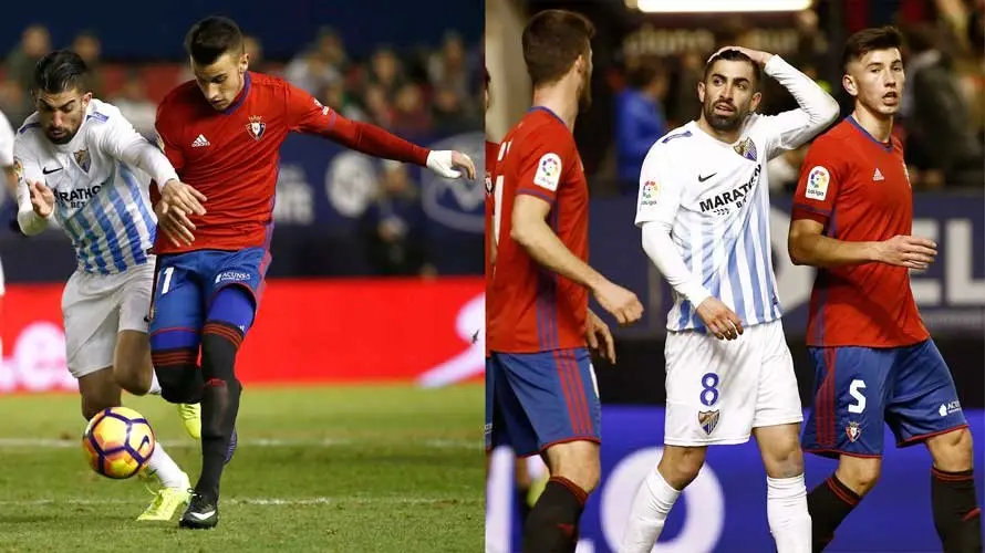 Partido de la vigésima jornada de Liga que disputan Málaga y Osasuna en el estadio El Sadar de Pamplona. EFE/Jesus Diges