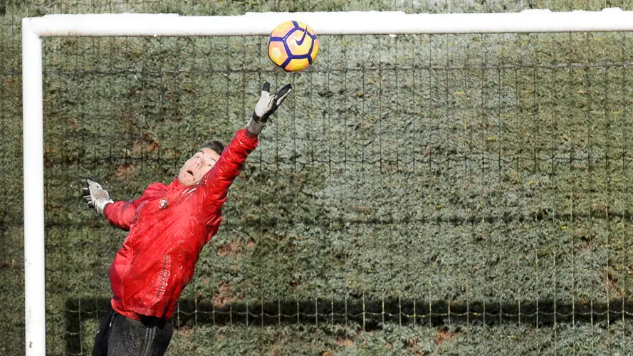 Entrenamiento de Osasuna con nieve en las instalaciones de Tajonar. Sábado 14 enero de 2017.