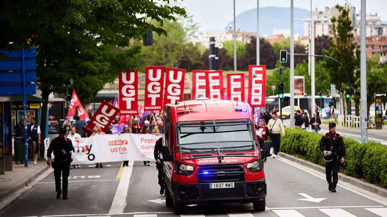 UGT y CCOO han vuelto a pinchar en su convocatoria del 1 de mayo en Pamplona. Pocos cientos de manifestantes, la mayoría liberados, delegados y enlaces sindicales, han acudido este jueves a la manifestación del día del trabajo. Una vez más, el acto ha evidenciado la falta de respaldo social hacia unos sindicatos cada vez más alejados de los trabajadores y más alineados con la estrategia política del PSOE, al que respaldan de forma incondicional desde hace años.