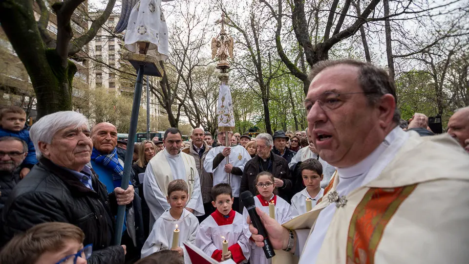 Multitudinario recibimiento al Ángel de Aralar a su llegada a Pamplona. IÑIGO ALZUGARAY