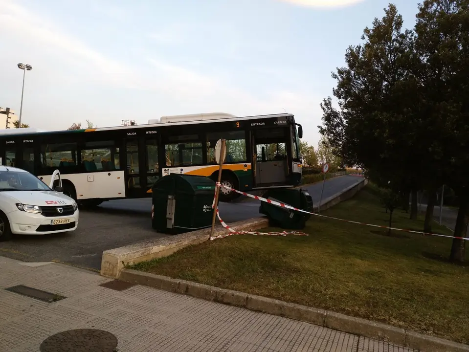 Sobresalto en la UPNA: así ha quedado esta villavesa tras el espectacular choque contra unos contenedores