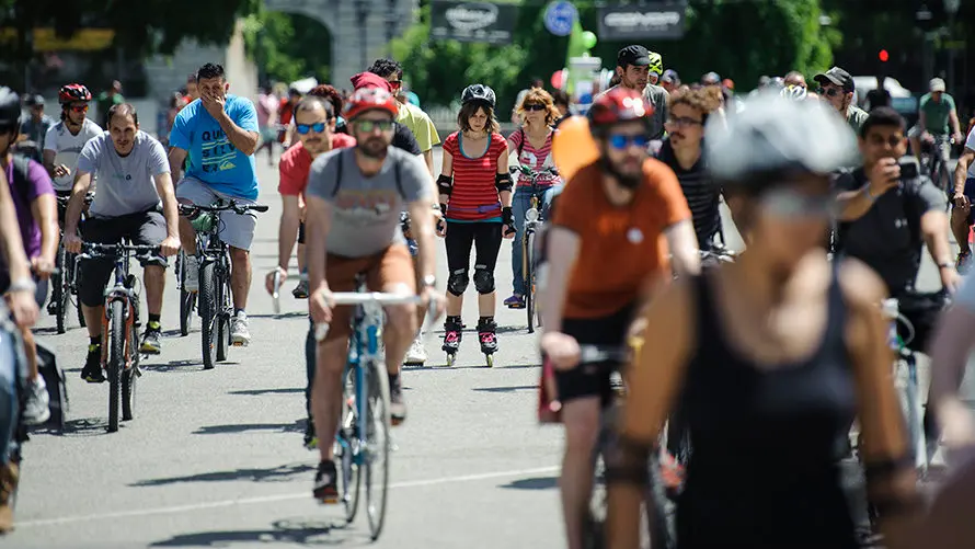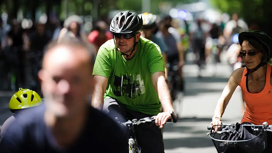 Salida de la Bicifest que recorre el centro de Pamplona a favor de un cambio de modelo de movilidad en la ciudad. MIGUEL OSÉS (4)