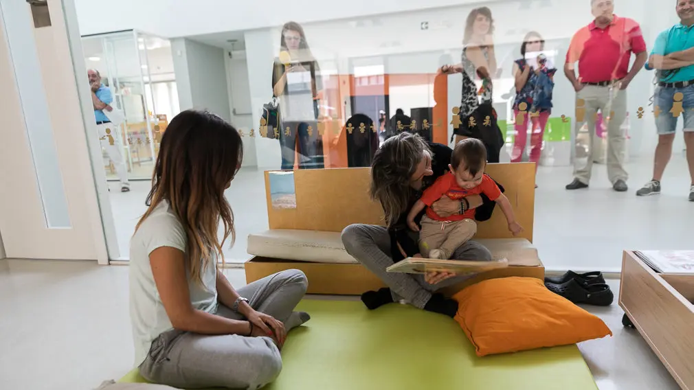 Joseba Asirón ha visitado la escuela infantil Hello Buztintxuri para dar la bienvenida a padres y menores en un día muy importante para ellos.