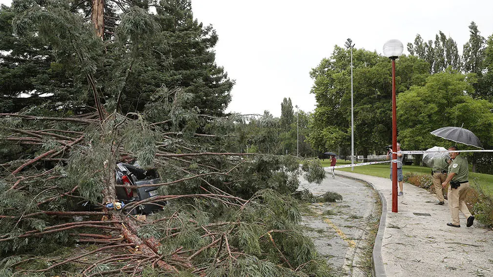 Seis heridos en Pamplona después de caer un árbol en el campus de la Universidad de Navarra. EFE/Villar López