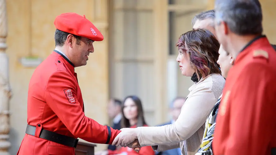La presidenta de Navarra, Uxue Barkos, preside la fiesta de la Policía Foral con diferentes condecoraciones. PABLO LASAOSA 34