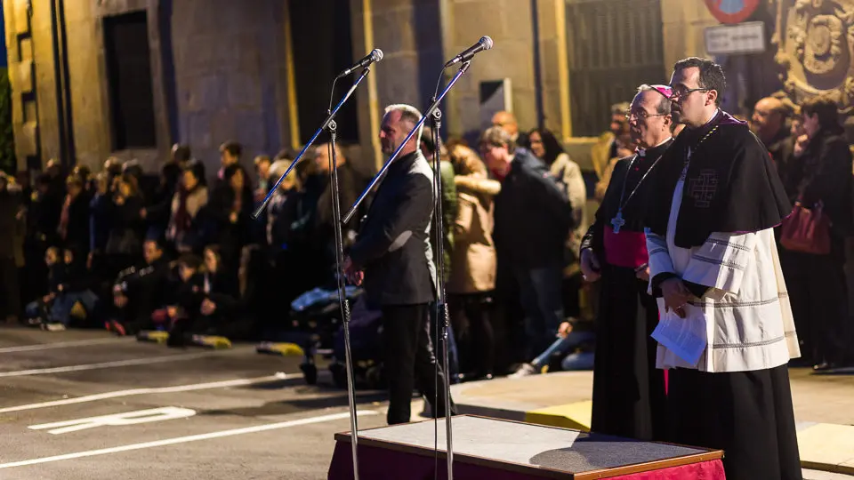 Miles de personas participan en la procesión de Jueves Santo, con tres pasos, la Cofradía de la Flagelación de Logroño y un rezo con el Arzobispo en la plaza de Santa María. Puedes volver a ver la procesión íntegra aquí.
