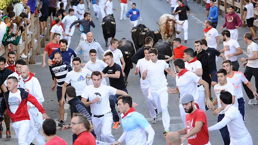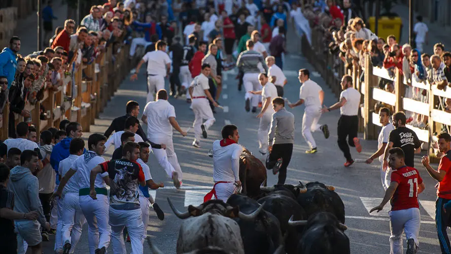 Largas y rapidísimas carreras de los mozos por las calles de Tafalla en el tercer encierro de sus fiestas