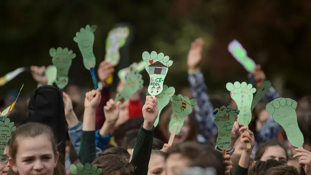 Cientos de niños marchan en Pamplona para exigir una educación de calidad con todos los jóvenes del mundo