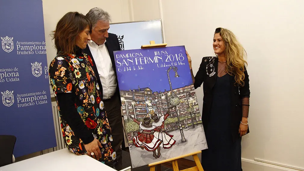 El Ayuntamiento de Pamplona ha dado a conocer el cartel ganador de los Sanfermines de 2018, obra de la pamplonesa Adriana Eransus. IÑIGO ALZUGARAY