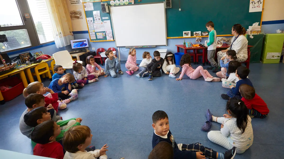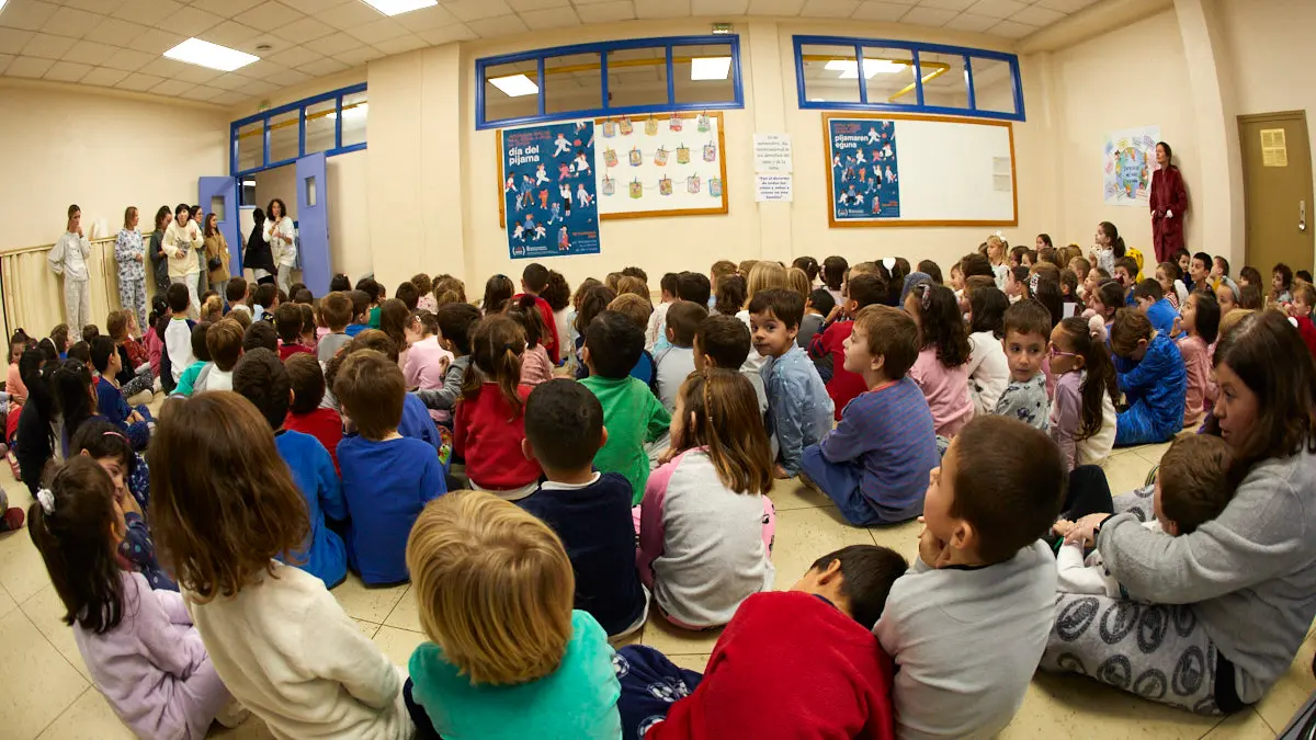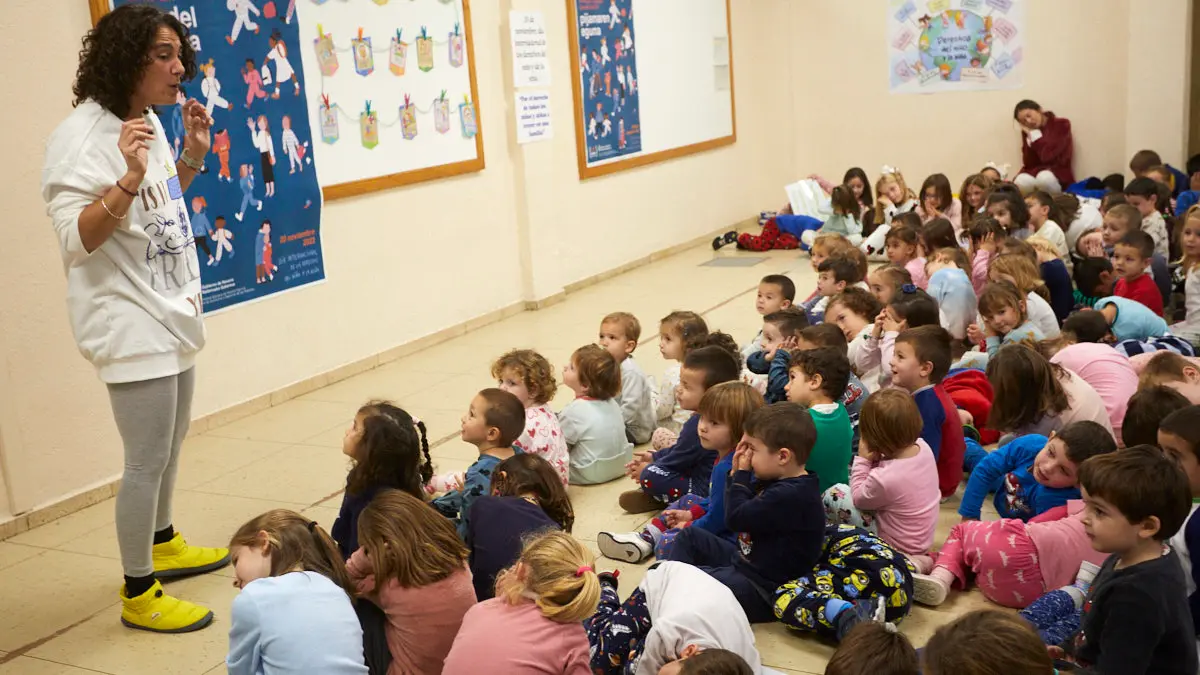 De la cama al colegio: decenas de niños van en pijama a clase en Pamplona