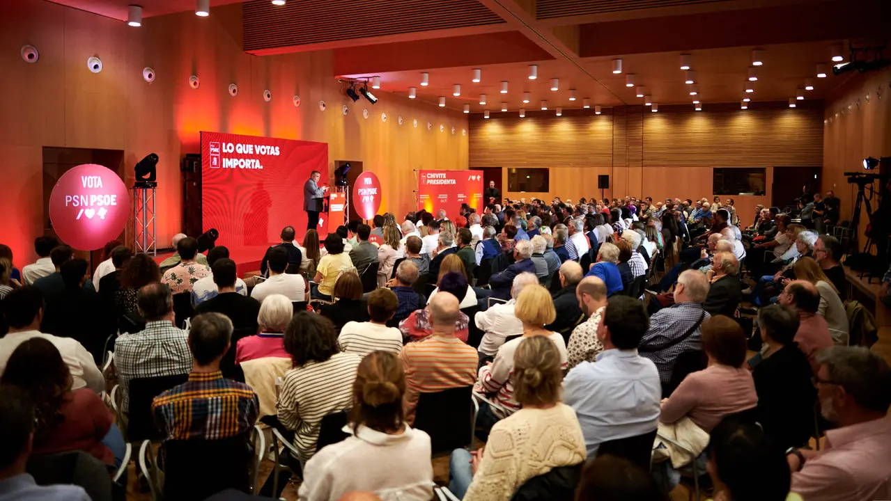 Acto de fin de campaña del PSN con María Chivite, Santos Cerdán y Elma Saiz. PABLO LASAOSA