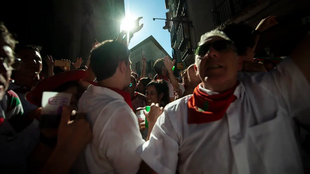 Momentos de agua tras el chupinazo de los sanfermines de 2018. MIGUEL OSÉS