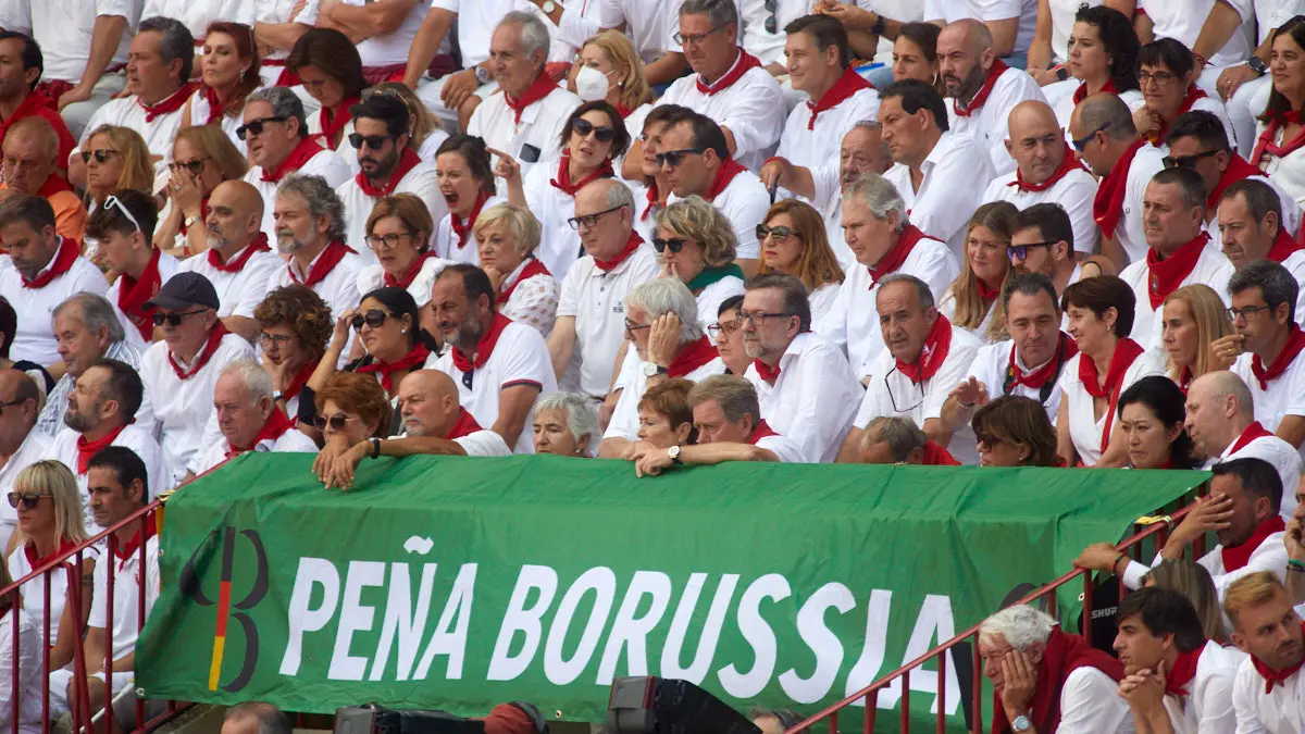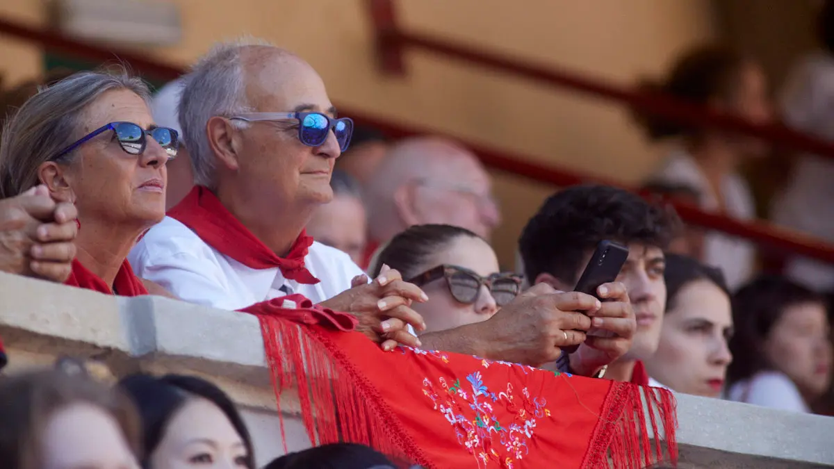Ambiente en los tendidos durante la primera corrida de la Feria del Toro de San Fermín 2022 en la que se ha celebrado el centenario del coso pamplonés. IÑIGO ALZUGARAY