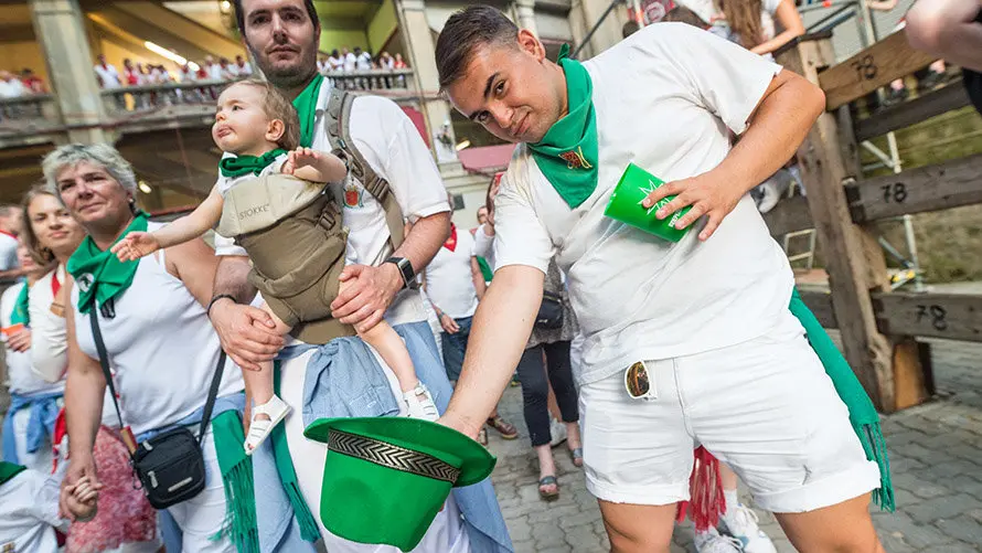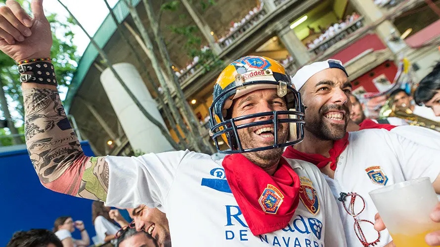 Fiesta para todos: así salen las peñas de Pamplona de la Plaza de Toros