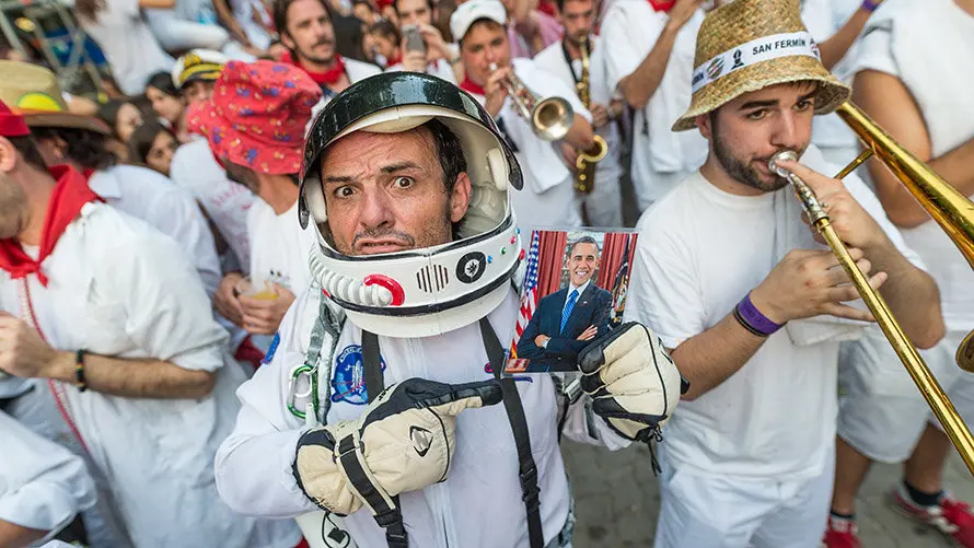 La fiesta durante la salida de las peñas de la plaza de toros de Pamplona en Sanfermines DANIEL FERNÁNDEZ (2)