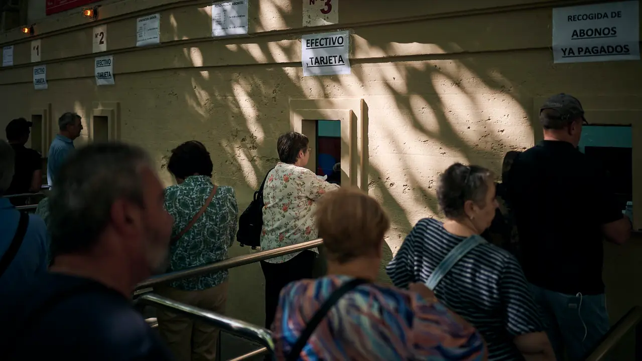 Renovación de abonos para la Feria del Toro de San Fermín 2025 en la plaza de toros de Pamplona. PABLO LASAOSA