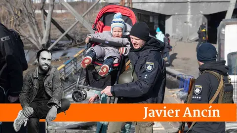 Los peluches cruzando escombros, de colores vivos como una antorcha en la oscuridad, como un arco iris en mitad de un desolado paisaje gris, marrón, negro. Qué pocos colores tiene la guerra.