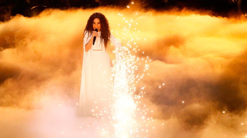La cantante tras un alarde de fuegos pirotécnicos termina lanzándose al cuerpo de baile que la acompaña durante toda esta actuación. Su canción tiene los mismo acordes que la ganadora en 2015 'Heroes' (Suecia).