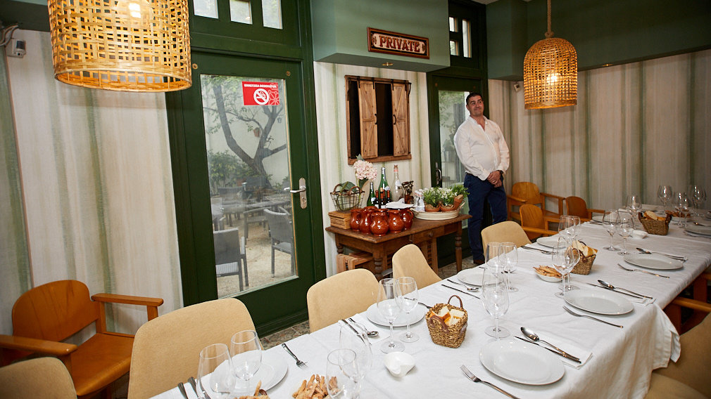 "Mi mujer es decoradora y quisimos que el patio fuera la continuación del restaurante. Todo se sirve en ollas de barro, el vino por ejemplo va en jarras de barro. Hemos cuidado ese tipo de detalles", señala.
