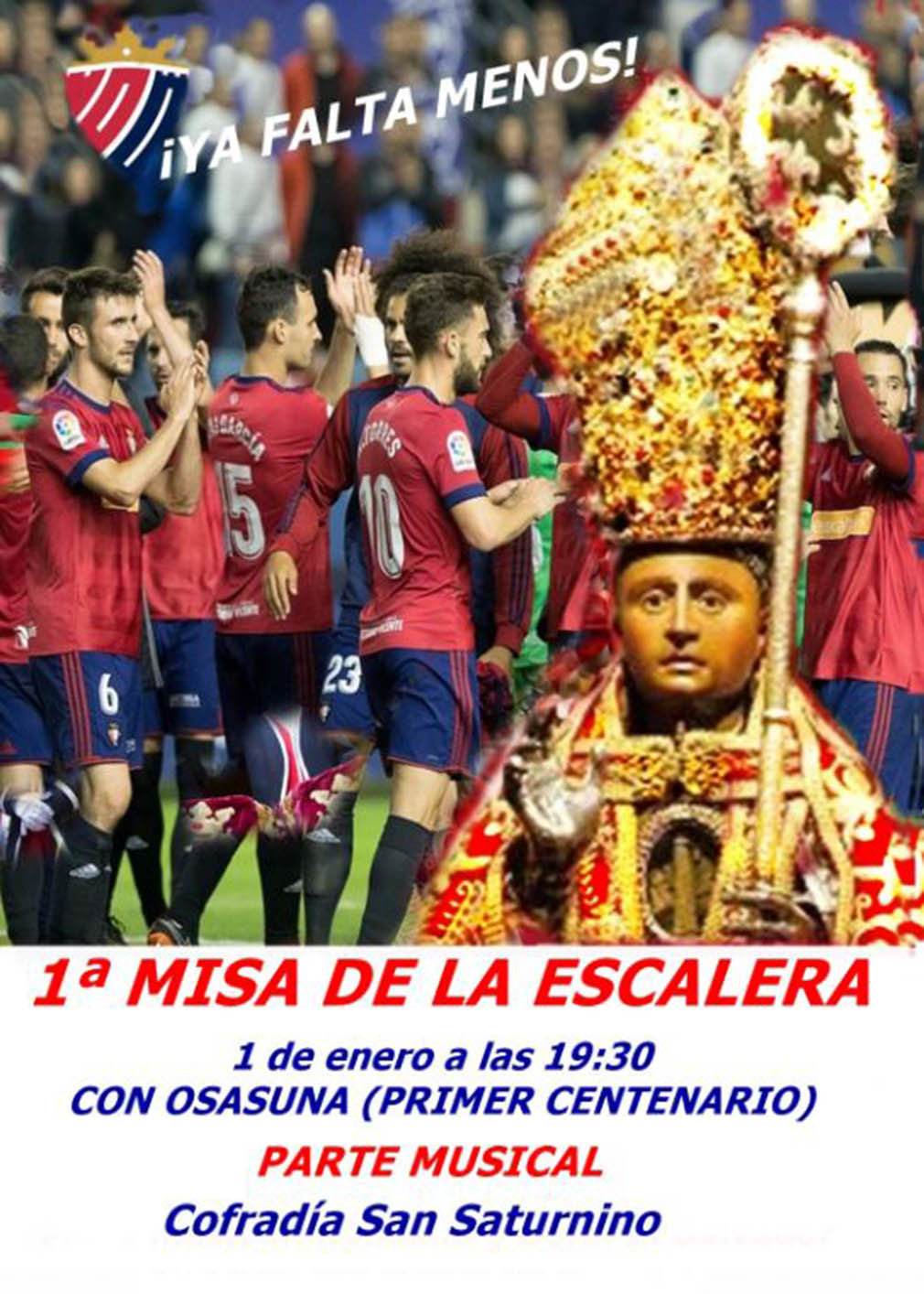 El primer equipo del club navarro acompañará el primer día del año al copatrón de Navarra en la iglesia de San Lorenzo. A las 19.30 horas, con el clásico 1 de enero, arrancarán las tradicionales y multitudinarias misas de la escalera, organizadas en la citada parroquia pamplonesa que alberga la capilla de San Fermín.
