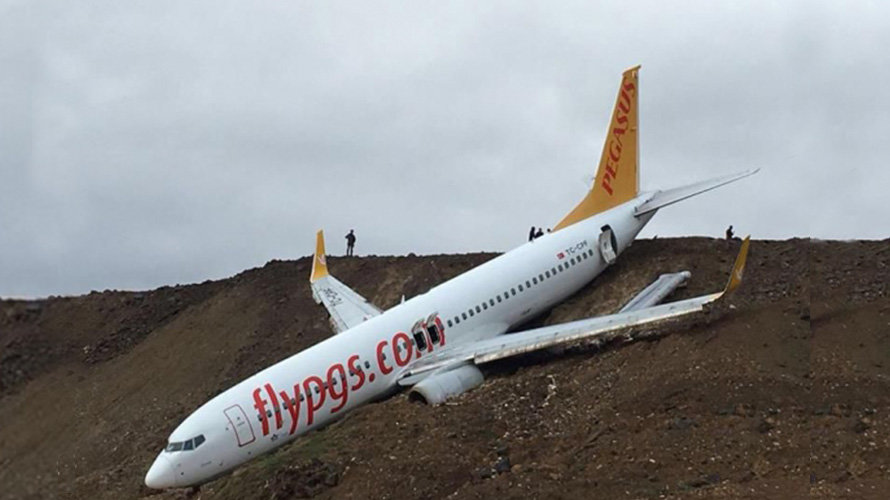 El aparato, un Boeing 737-800 de la aerolínea turca Pegasus proveniente de Ankara derrapó al aterrizar en Trebisonda, una ciudad costera del Mar Negro, y quedó atrapado en la ladera de una pendiente que baja a la playa.