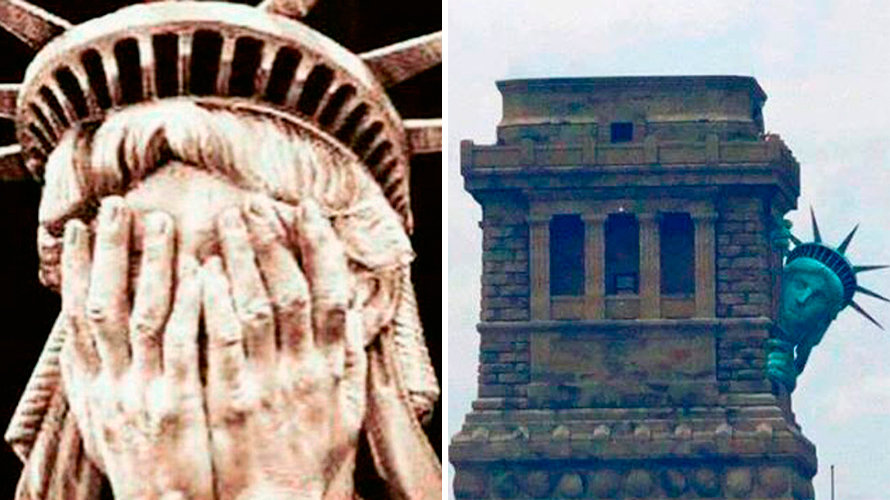 Así, ha podido verse a una miedosa estatua de la Libertad escondiéndose o llorando ante las políticas del multimillonario republicano.