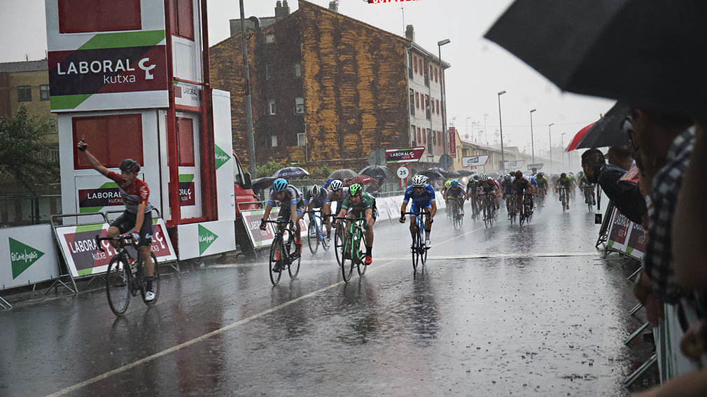 📹 Llegada bajo la lluvia en la línea de meta de #Azagra #VueltaNavarra18 @LABORALkutxa#Ciclismo #Navarra pic.twitter.com/PjxSCaBGO3
