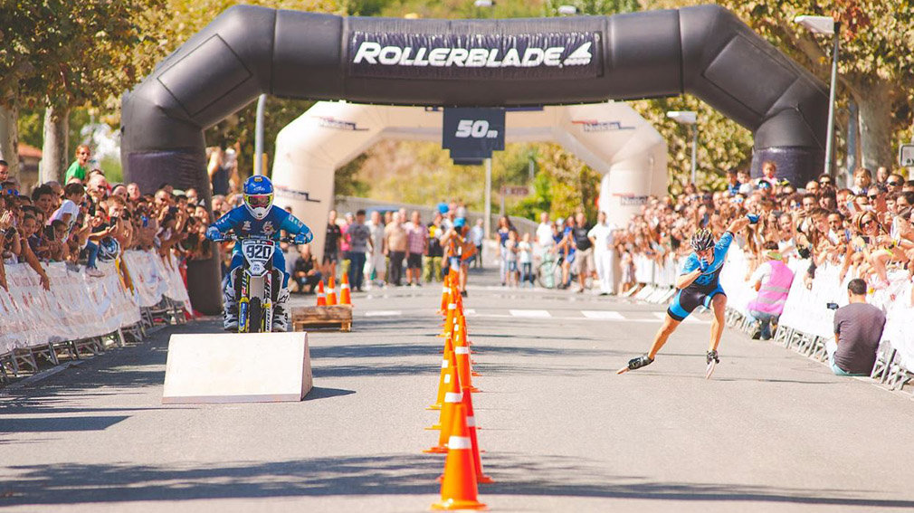 El patinador, que participará en las próximas Olimpiadas de la Juventud, ha realizado una espectacular carrera de 100 metros antes de la meta en el paseo de los Fueros de Puente la Reina, mientras que el piloto ha tenido que sortear en la misma distancia una serie de obstáculos, a los que acostumbra en sus competiciones de motocross.