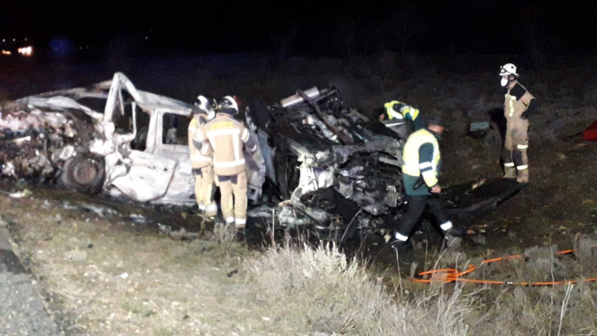 El accidente ha ocurrido a las 21.15 horas de este viernes en la N-234, cuando ambos vehículos han chocado frontalmente y han ardido.