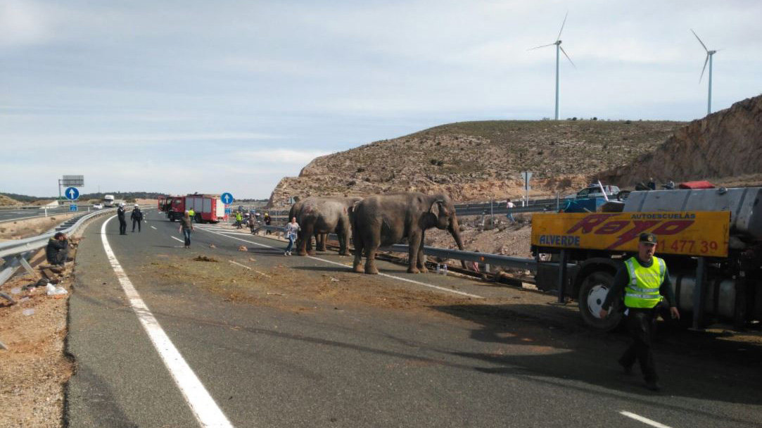 Mastodóntico vuelco en la autovía: un camión que transportaba elefantes se estrella en Albacete