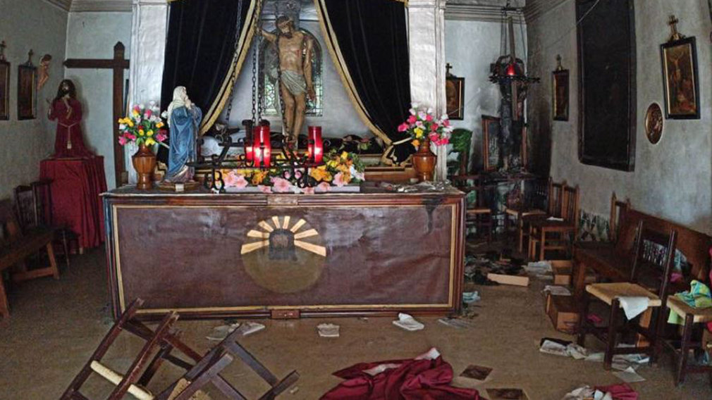 Los asaltantes destrozaron el lugar y quemaron la talla del Nazareno, además de las telas de las penas y el altar.
