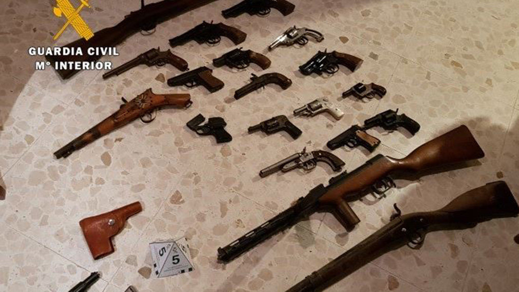 Asimismo, la Guardia Civil ha localizado en la vivienda del detenido otras 19 armas, varias de ellas troqueladas e inutilizadas, otras que pudieran ser históricas y otras en las que no se observa ningún tipo de troquel y que están dispuestas para hacer fuego.