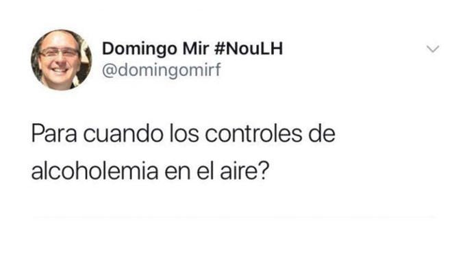 ERC ha suspendido la militancia del coordinador de su Grupo Municipal en L'Hospitalet de Llobregat (Barcelona), Domingo Mir, después de que publicase en su cuenta de Twitter "Para cuándo los controles de alcoholemia en el aire?" como respuesta a una noticia sobre el piloto del Ejército del Aire que falleció este jueves al estrellarse el Eurofighter que pilotaba tras el desfile del 12-O.