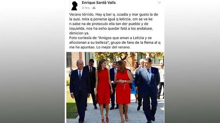 El Gobierno andaluz había pedido este martes a Alfonso Dastis que reprobara al cónsul de España en Washington por ridiculizar a la presidenta de la Junta, Susana Díaz, y al acento andaluz en las redes sociales. El cónsul publicó este lunes en su cuenta de Facebook un comentario en el que critica a la presidenta andaluza por llevar un vestido similar al de la reina Letizia, al tiempo que se ríe del acento de los andaluces.