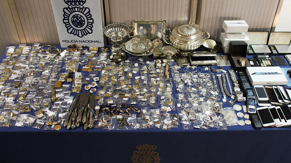 En la operación, se han realizado un total de siete registros interviniéndose un vehículo, casi 20.000 euros en efectivo además de dinero procedente de otros países, 18 teléfonos móviles de alta gama, relojes, más de 1.400 gramos de piezas de joyería, útiles para el mantenimiento de los metales y documentos utilizados como "muletas" para cometer los hurtos con anagramas de una asociación de discapacitados.