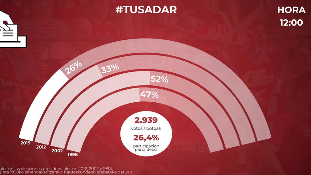 Osasuna ha comunicado que a las 12 horas del martes, 19 de febrero, ya habían votado el 26,4% de los socios.