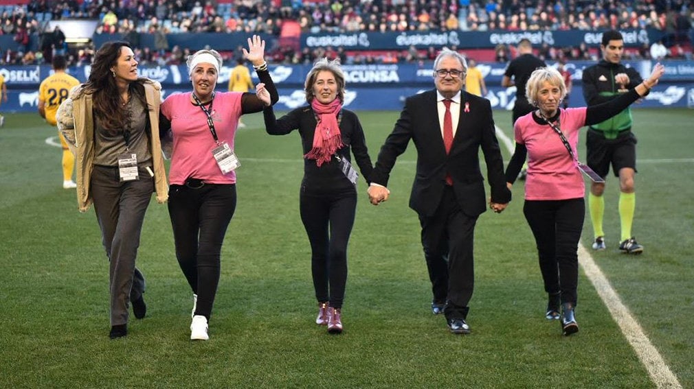 Un homenaje merecido. Osasuna ha querido agradecer a la asociación Saray, debido a su apoyo a las mujeres con cáncer de mamá, con el saque de honor en el encuentro entre los 'rojillos' y el Alcorcón.