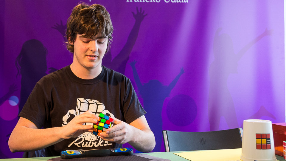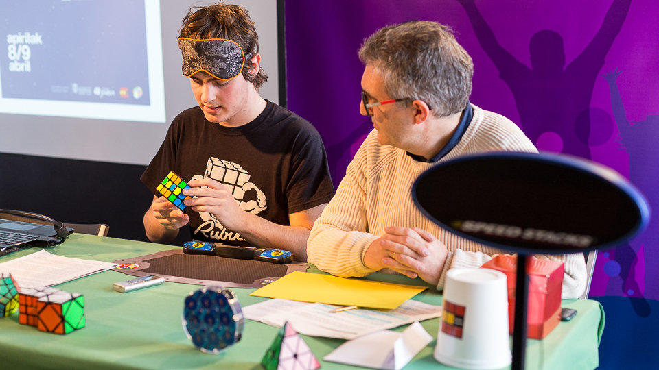 En la presentación, ha estado también el recordmen navarro Julen Simón Iriarte, capaz de armar un cubo de Rubik con los pies en poco más de un minuto y, con las manos, en apenas nueve segundos.