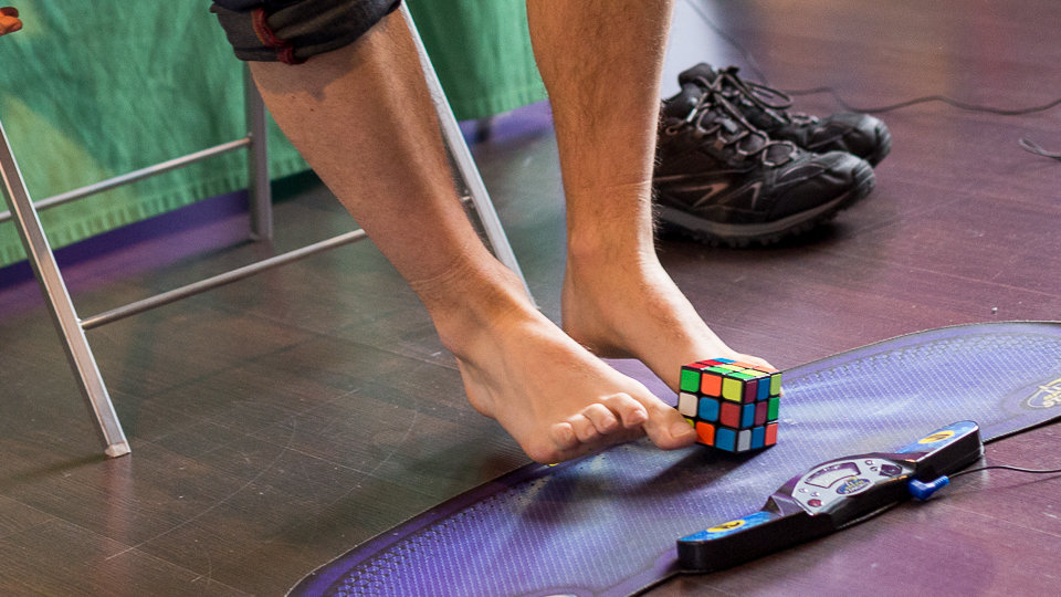 Alucinante récord para recibir al cubo de Rubik en Pamplona: conoce al navarro que usa sus pies para 'romperse la cabeza'