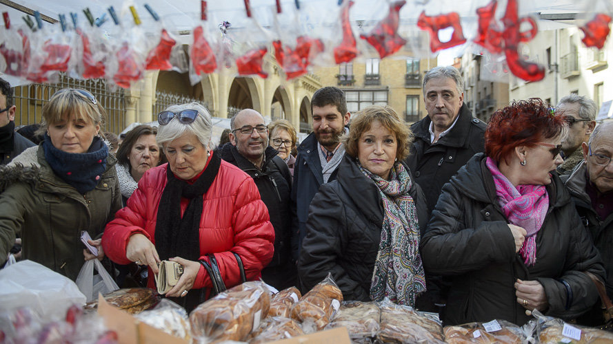 Asirón ha preferido pasear a media mañana junto con Joxe Abaurrea y Aritz Romeo, de EH Bildu y también miembros de la corporación municipal, por los 21 puestos instalados a las afueras de la parroquia, donde el alcalde ha podido comprar algún rosco, dulce o caramelo.