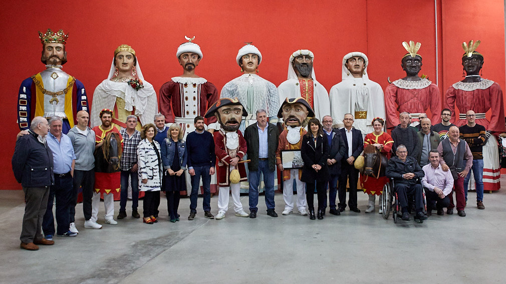 De profesión maestro pintor, Tadeo creó las figuras de los ocho gigantes, así como las de los cabezudos Coletas y Barbas y las de dos zaldikos. Precisamente, Coletas y Barbas han recibido de manos del alcalde un regalo con motivo de esta efeméride.