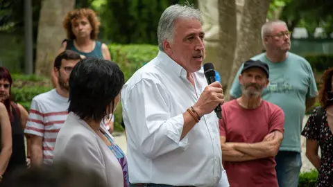 El despacho del alcalde en el Ayuntamiento de Pamplona cuenta desde este jueves con el tradicional nacimiento que se instala cada año. En esta ocasión, plasma la Natividad ubicada entre las ruinas de una iglesia románica y está realizado en porexpán pintado, con hiedra y otros elementos naturales.