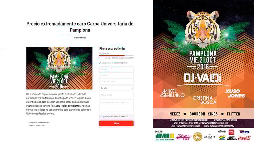 De hecho, la plataforma Change.org ha visto en los últimos días la aparición de una curiosa petición, firmada ya por más de 1.000 estudiantes, en la que se solicitaba una supuesta bajada de precios en este evento universitario.