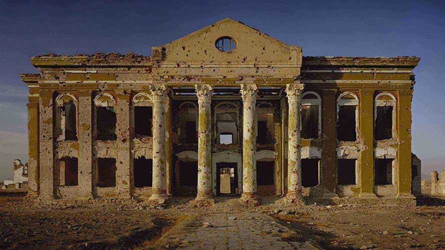 Son 40 fotografías, todas posteriores al 11 de septiembre de 2001, que ofrecen una mirada reflexiva sobre la decadencia y el desmoronamiento de los imperios, sobre los lugares en conflicto y los espacios devastados por la guerra. Son los paisajes resultantes de la brutalidad y la barbarie de la actividad bélica: los campos de batalla, las ciudades arrasadas y los desechos esparcidos de la guerra. Son 40 imágenes del fotógrafo de prensa Simon Norfolk, un relato para la reflexión, para la memoria y para la historia.
