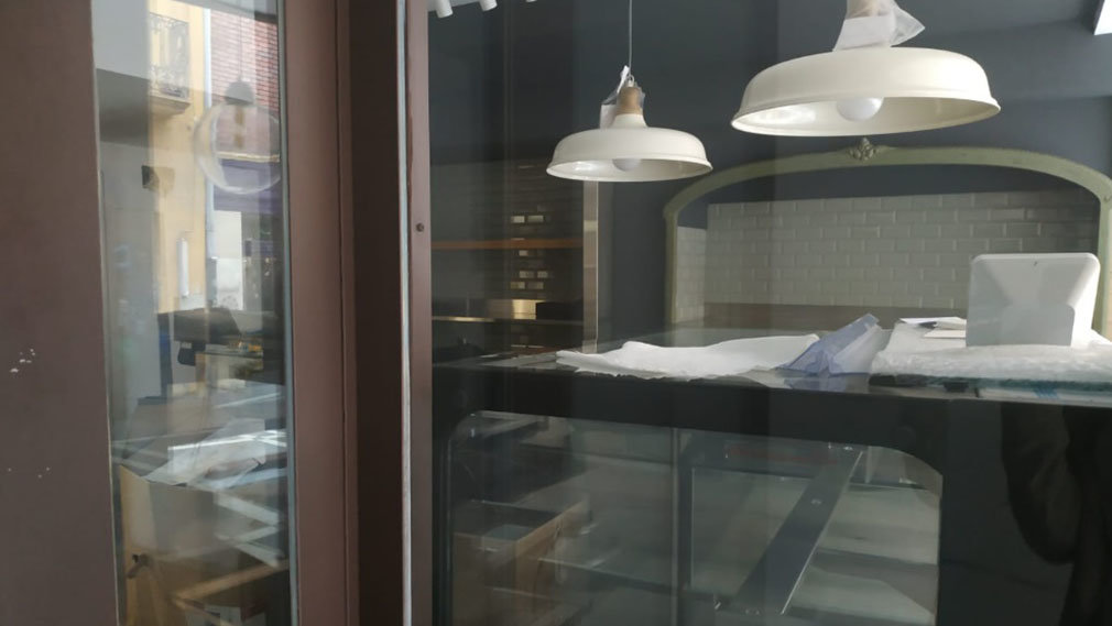 En el local de la calle Curia ya se puede ver un mostrador, varios muebles, el horno y un escaparate aluminio, que albergará los famosos garroticos y el resto de pastas de la conocida marca. Entre algunos muebles aún precintados se pueden observar las clásicas cajas de cartón de esta conocida tienda del Casco Viejo de Pamplona.