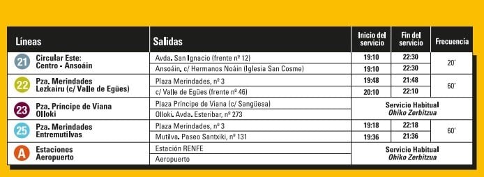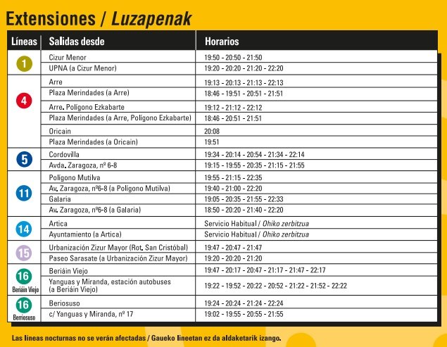 Los detalles del servicio podrán consultarse en las villavesas, en la página web del Transporte Urbano y en el teléfono de Atención Ciudadana: 948 42 32 42.