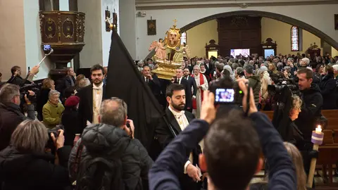 El recorrido ha sido breve, pero muy cargado de simbolismo. La comitiva ha partido de Dormitalería para seguir por Bajada de Javier, Merced, Juan de Labrit y la plaza de Santa María la Real, antes de regresar por el mismo entorno hasta su punto de salida.