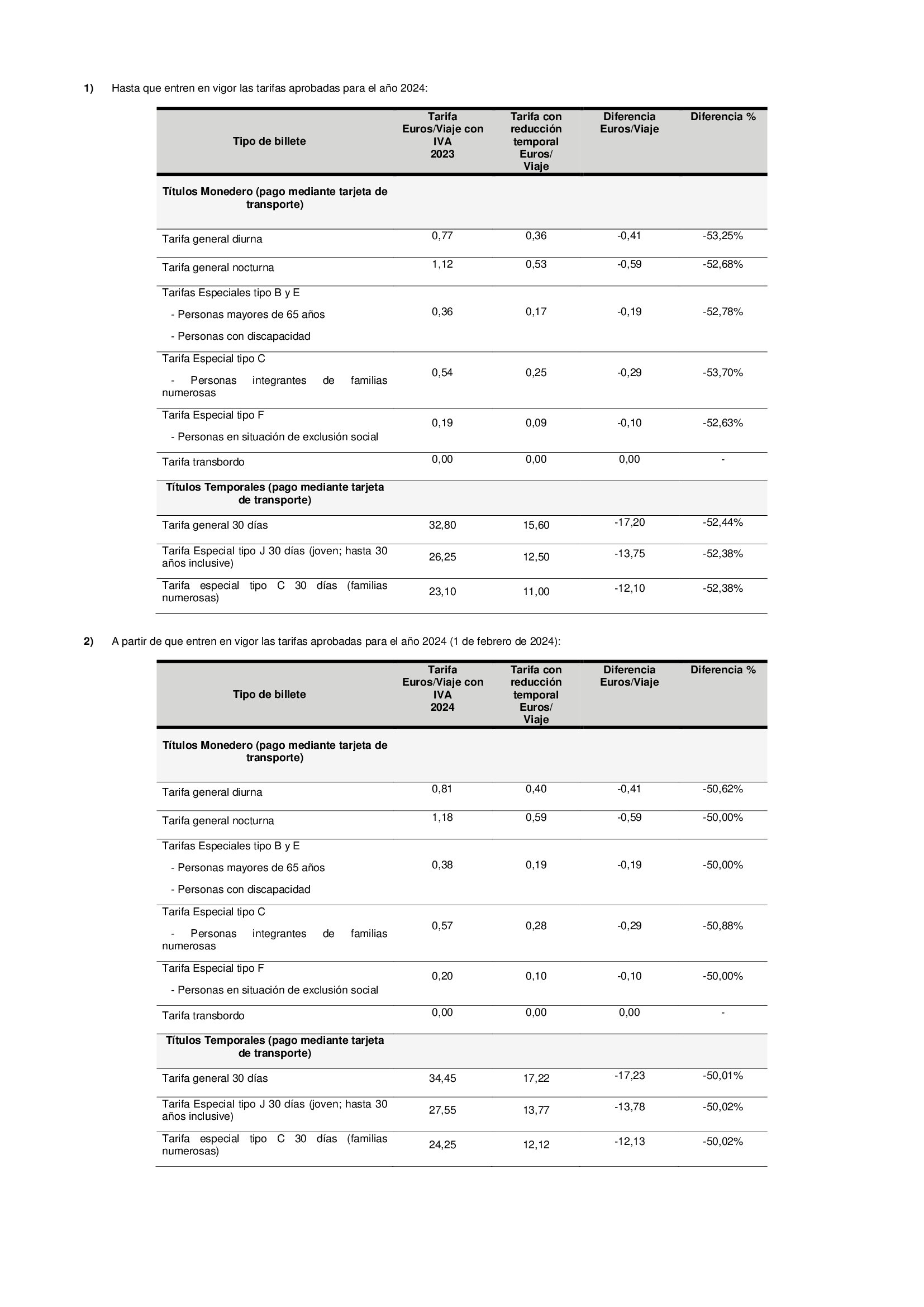 Para la aplicación de estos descuentos, hay que tener en cuenta que en noviembre se aprobaron inicialmente las tarifas del transporte para 2024 que, dados sus plazos de tramitación, no entrarán en vigor hasta el 1 de febrero.