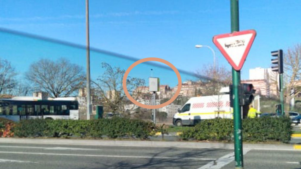 Otro de los puntos de control de la velocidad se encuentra en la carretera de Sarriguren, muy cerca de la chimenea industrial del barrio pamplonés de Mendillorri y en sentido Ripagaina.