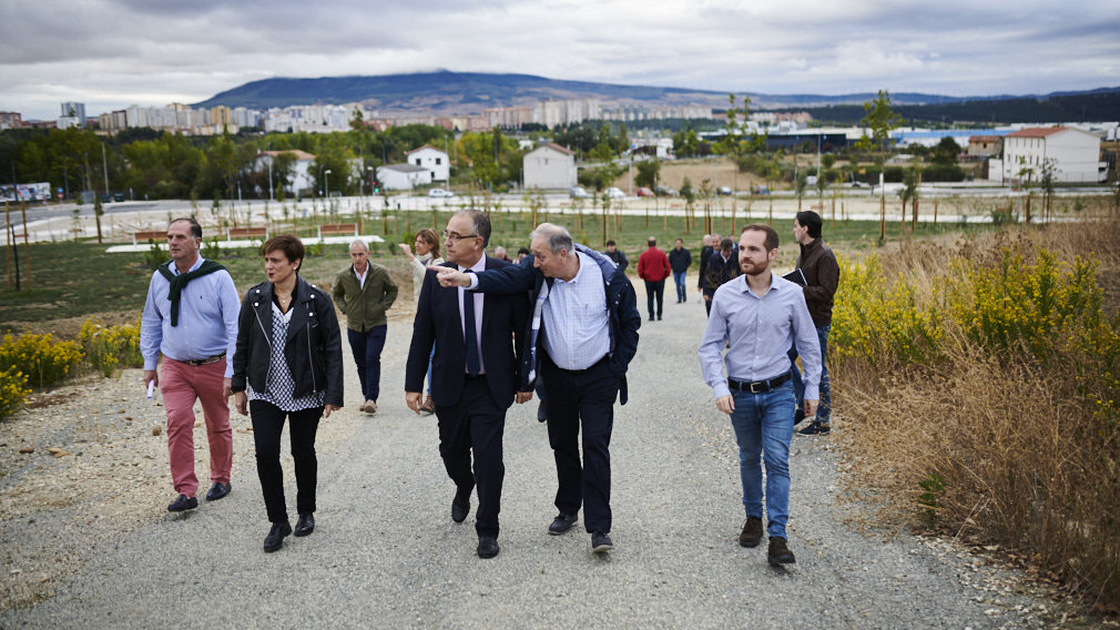 Las obras de urbanización del nuevo parque de 14.000 m2 ubicado en la parcela del antiguo matadero ya han concluido. El Consejo de Gerencia de Urbanismo del Ayuntamiento de Pamplona, encabezado por el alcalde, Enrique Maya, ha visitado este miércoles un espacio que también ha sido urbanizado para acoger una zona de actividad económica y que cuenta con una parcela dotacional.